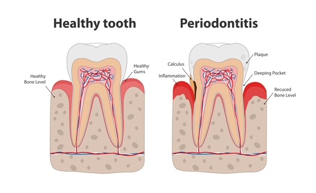 Parodontitis is een tandvleesontsteking die veel verder gaat dan alleen de ontsteking van het tandvlees. Bij parodontitis heeft de ontsteking zich verder uitgebreid naar het kaakbot en is er sprake van botafbraak. Parodontitis geeft zelden pijnklachten en kan daardoor lang onopgemerkt blijven. Wanneer de ontsteking niet behandeld wordt, zal er steeds meer botafbraak zijn met als gevolg tanden op den duur van stand veranderen en/of los komen te zitten en verloren gaan.